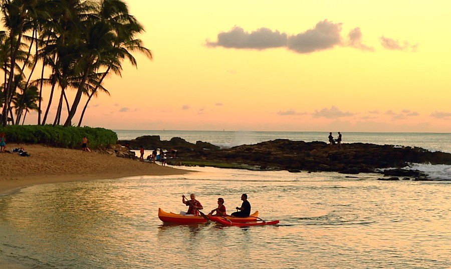最近多位大师都上夕阳西下的好片,俺也凑个热闹,还是圣诞节在欧胡岛拍的,自当绿叶衬红花 1.