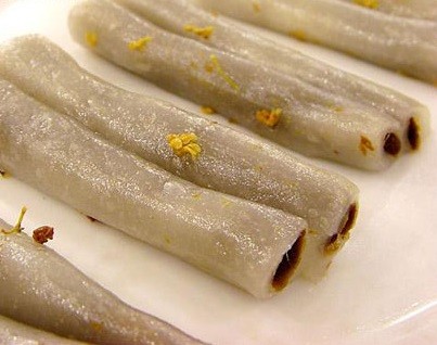 49. 條頭糕——還是一個字:“糯”,在入嘴的瞬間,豆沙、糖桂花和糯米混在一起,似乎達到了幾種食材混合的最佳比例。糯而不爛、甜而不膩、綿而不干,而且一口可吃下,恰到好處。