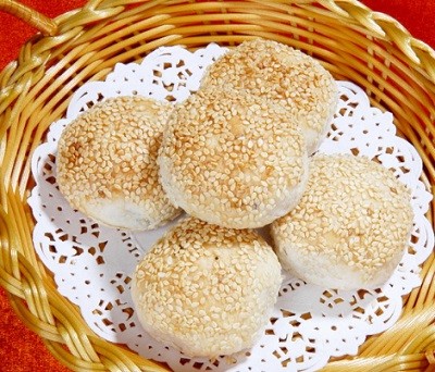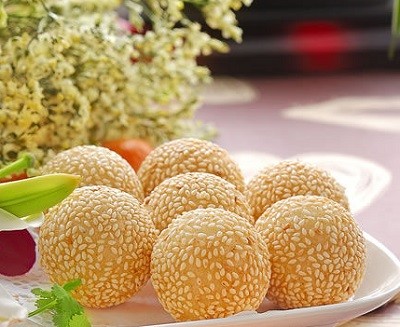 46. 麻球——上海最著名的大眾化傳統名點。最早始於清代,近100年來,在上海極為盛行。如今用料、製法都有所變化,形狀也有大小不同。色澤金黃,皮薄香脆,甜糯適口。