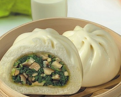 47. 素菜包——它是以香菇、豆製品等素蔬為原料,用植物油製成餡料,採用發酵麵皮包製而成,故名"素菜包"。此包首創於上海功德林菜館,如今已成為上海素菜館和中式點心店聞名的夏季時令名吃。