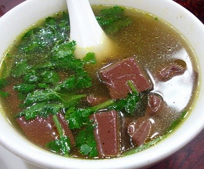 41. 雞鴨血湯——伴着少許時件(心、肝、肫、腸,被稱作“時件”),許多豆丁大小的血塊,會順着調羹滑入喉嚨,嫩、香、鮮、燙,頓時通體舒泰,身上每一個毛孔都覺得“適意”。