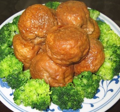 29. 油麵筋塞肉——就是把肉餡塞進油麵筋.肉餡要肥瘦適中,細斬粗切。香菇和冬筍(或荸薺)也切成極細的碎丁,伴以薑蓉,蔥碎,生抽,料酒,鹽,糖調味,做成餡料。春天的時候,加了薺菜,那就更好吃了。很小的時候小編一頓就能吃下3個油麵筋塞肉,再用香濃的醬汁就着白飯,可以吃上兩大腕。