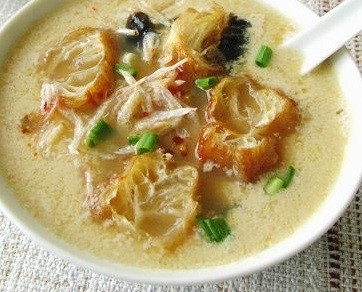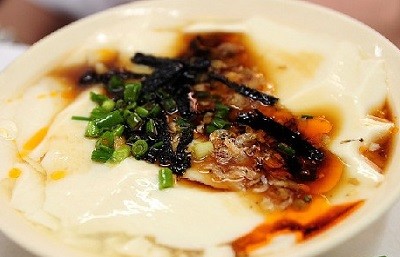 25. 豆腐花——最早由小食攤創製,清代盛行於無錫,20世紀20年代初期盛行於上海,深受人們喜愛。後來曾一度失傳,近幾年來又重新面市,而且用料考究,質量頗佳。豆腐花的特色:色澤潔白,滑嫩爽口,鮮咸微甜,微辣適口。