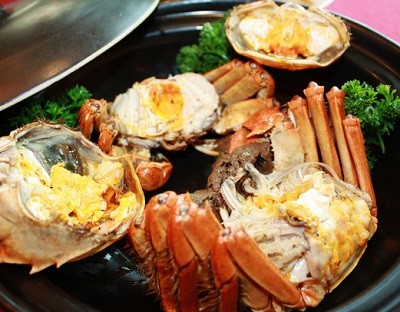 17. 大閘蟹——吃大閘蟹是一種季節性的享受,唐代詩人李白曾贊道:“蟹螯即金液,糟丘是蓬萊。且須飲美酒,乘月醉高台”,饕客們怎可錯過這個大快朵頤的好時機,這不吃大閘蟹的季節又到了!俗語說:“秋風起,蟹腳癢,九月圓臍十月尖。”九月要食雌蟹,這時雌蟹黃滿肉厚;十月要吃雄蟹,這時雄蟹蟹臍呈尖形,膏足肉堅。