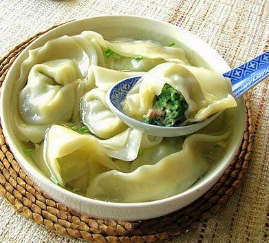13. 菜肉大餛飩——對上海人來說包餛飩的過程也是重享受。媽媽做的大餛飩可以說是獨一無二的美味。皮一定要用雞蛋皮,具有煮不爛的特點。整隻的大蝦配上冬筍、薺菜和青菜以一定比例搭配加上上等的豬肉,湯底則選用豬骨熬上3個小時直至骨頭酥爛。