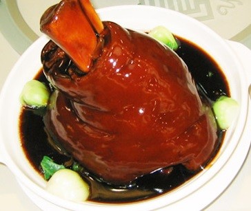 11. 周莊元蹄——此物採用乳豬之腿肘經褪毛、刷油、入味、過油、燉燒而成,肥而不膩,入口齒頰留香,令人回味無窮,至今魂牽夢縈……筷子觸皮即破,外肥內瘦,皮脂毫無肥膩之感,入口即化;瘦肉滑而不柴,遇齒則爛;肥瘦同吃,別有滋味,令人頓出此物只有天上有之感。