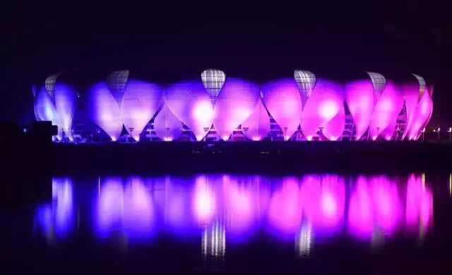 江水倒映着燈光,這是不同於白天的美 奧體中心 ▼