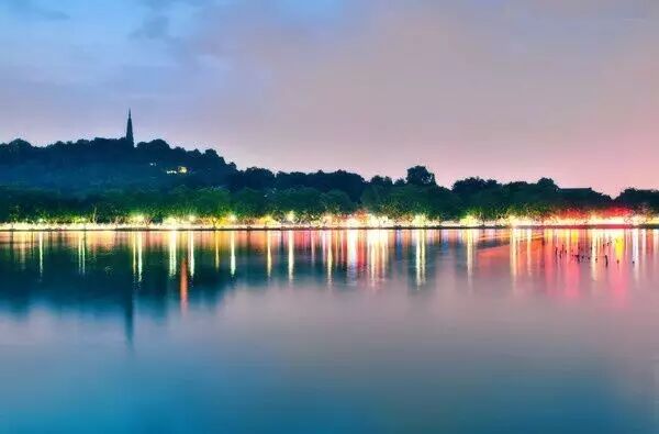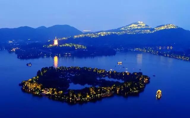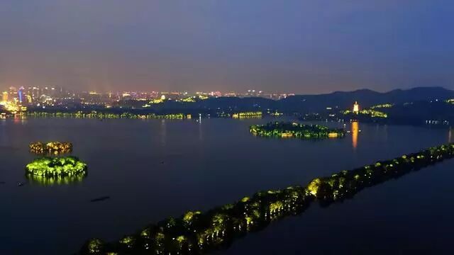西湖 ▼ 夜色中的西湖,更神秘夢幻了 西湖三島和蘇堤亮燈