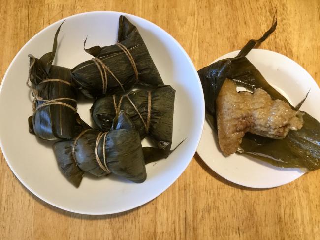 粽子终于出锅了。 今年和前年的粽子做了比较,真是越来越好噢! 在海外想要让孩子们保持文化传统真不容易啊! 五言【粽子】己亥文君作 一粒端阳粽, 绿如水玉冻。 叶青糯米粘, 扑鼻清香送。 五言【粽子】丁酉文君作 青青箬叶长, 裹粽在端阳。 糯米添红豆, 甜甜入口香。 |