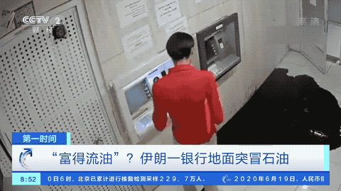 最近,一名伊朗男子在银行ATM机上取钱的时候,身旁的地面突然喷出黑色的石油、流淌一地。 《今日亚洲》详情报道: