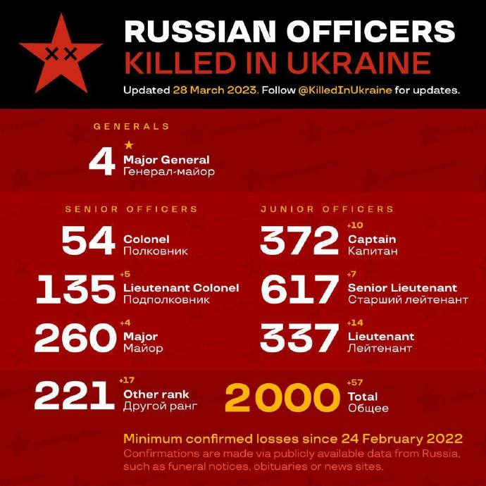 | 2022: | 俄侵烏克蘭,烏打死俄第七名上校。 | |