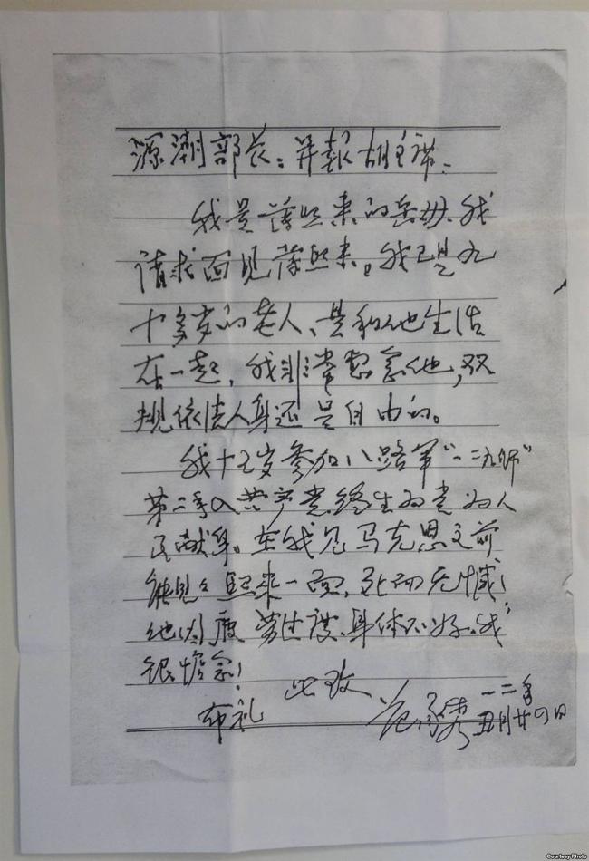我为有您这样一位革命八十余年的老母感到骄傲和自豪。也许对党不能说、甚至不让说的话,儿婿只能在被监禁的牢房里对娘泣说了。