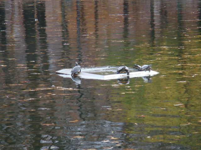 早上下雨之前,在池塘边散步,看那几只烤鸭,静静地飘在水面。突然一阵“嘎、嘎”声,水面大乱。