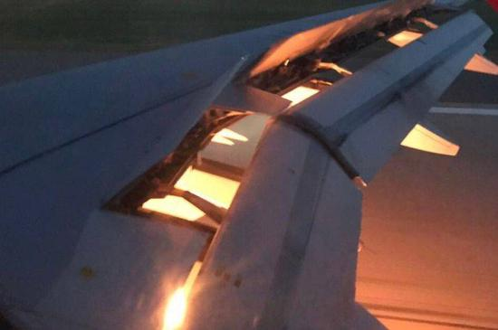 | 引擎在空中起火。目前已經安全抵達目的地 |