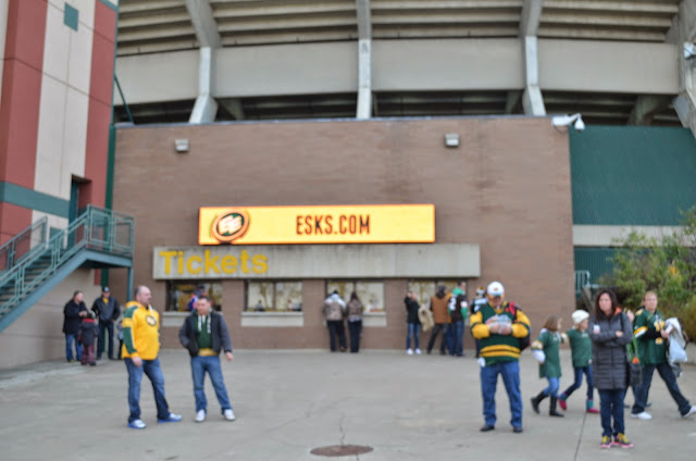 說起CFL真拿不出手,才9個隊,愛城有個愛基隊(請別誤解,全稱愛斯基摩隊),雙E - Edmonton Eskimos。好歹也是橄欖球隊吧,心念已動準備找鄰居。突然手機來了消息:“周六有空嗎,看橄欖球去?”, 額的天啊,誰這麼和我心有靈犀啊,原來是我同胞,上海高校訪問團的馬團長,華師大體育系主任研究生導師,算起輩份我是他爺爺輩呢。急忙回信:“幾點?甚喜!”。就這樣搞了四張票,周六下午5點愛城英聯邦球場(Commonwealth Stadium),本賽季愛基隊最後一個主場對BC的獅子隊。