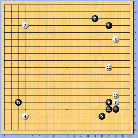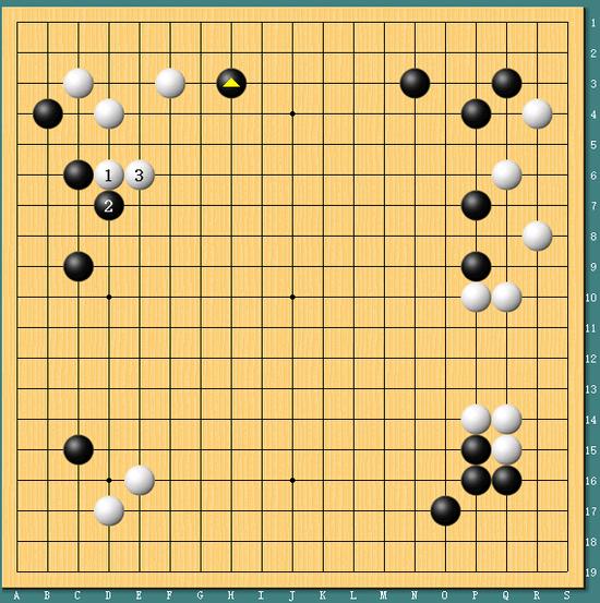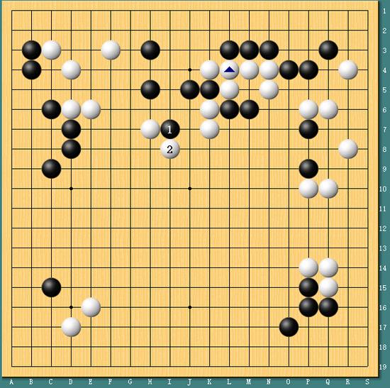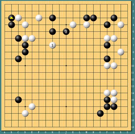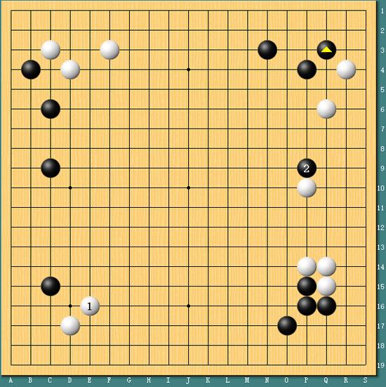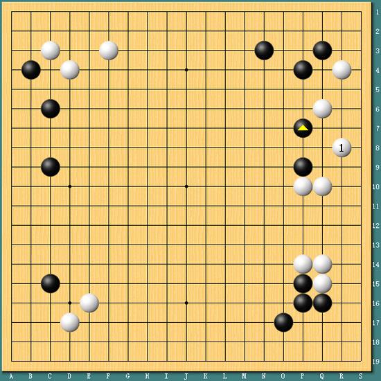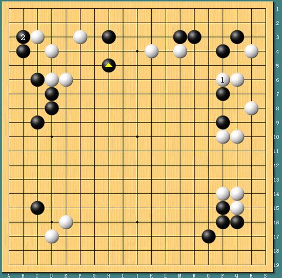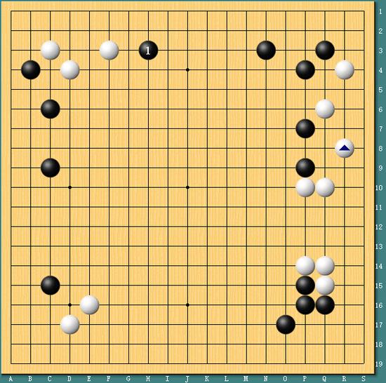 (根據新浪評論轉播) 右上角白棋先飛角,然後脫先,有些奇怪。第一感白棋應該會跳一個,沒想到脫先走了左下角。 白1忍耐。聶衛平建議此時黑棋脫先走左邊,右上角直接作戰沒有成算 李世石白1二路飛過。研究室震驚了。研究室一位大概新浪圍棋4D的棋手,經常這麼下 黑1逼住,極大。這段下完,研究室一致認為黑棋生動。