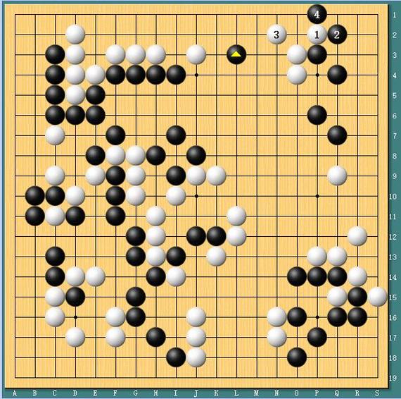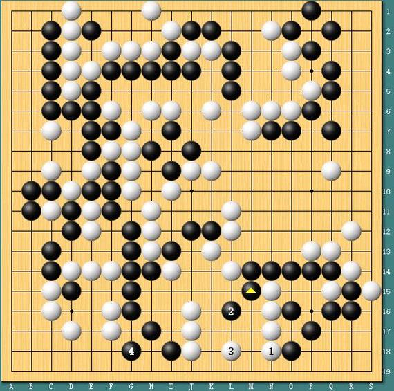 白棋也瞄着黑棋的弱點。金明完九段認為黑2比較小,所得不能補償左邊的損失。