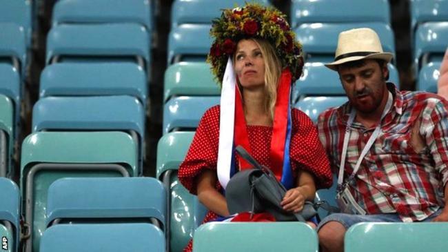 As the national anthem soared around the ground before kick-off, Russia fans unfurled two banners that read: "If not you, who? If not now, when?"