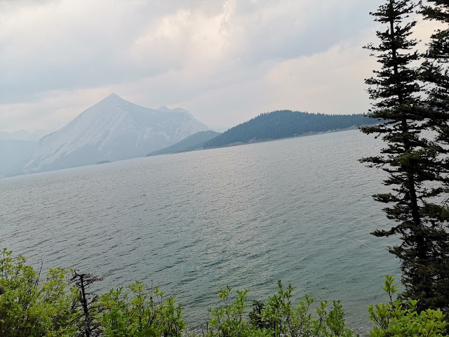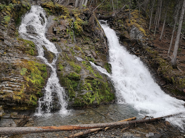 天气阴阴的但丝毫挡不住Upper Kananaskis Lake的壮丽妖娆,沿着湖不久就到了色锐尔溪流,只见二股涓溪挂在山坡腼腆跃出,闪着光直铺下去,亲吻着嶙嶙的石头树枝,激起一片波纹回荡在清澈的水面。