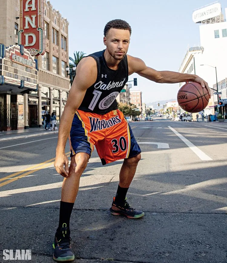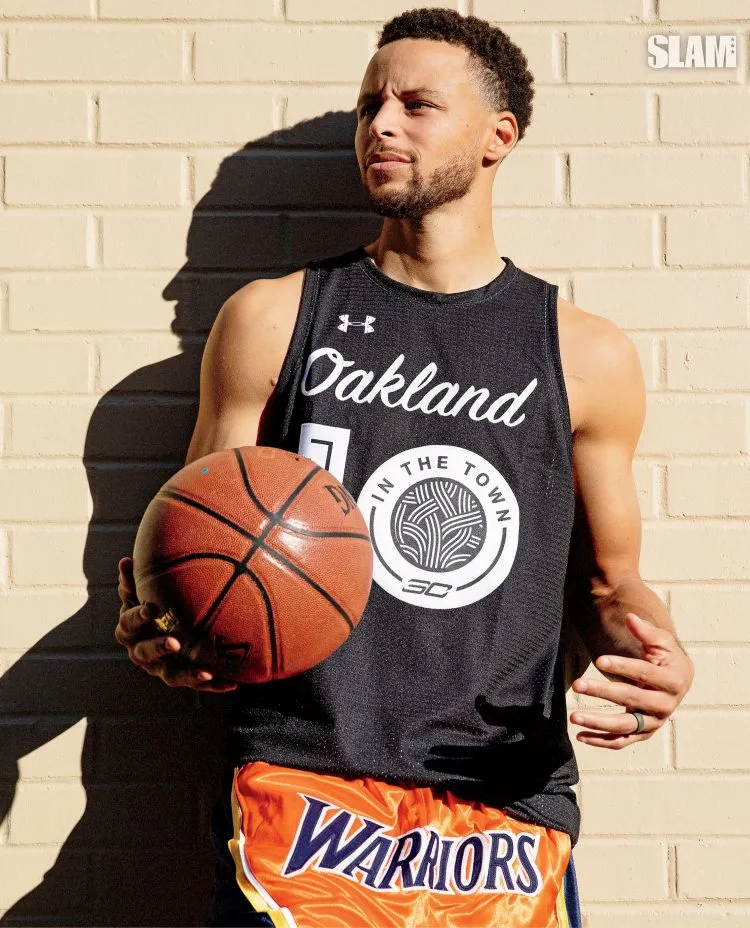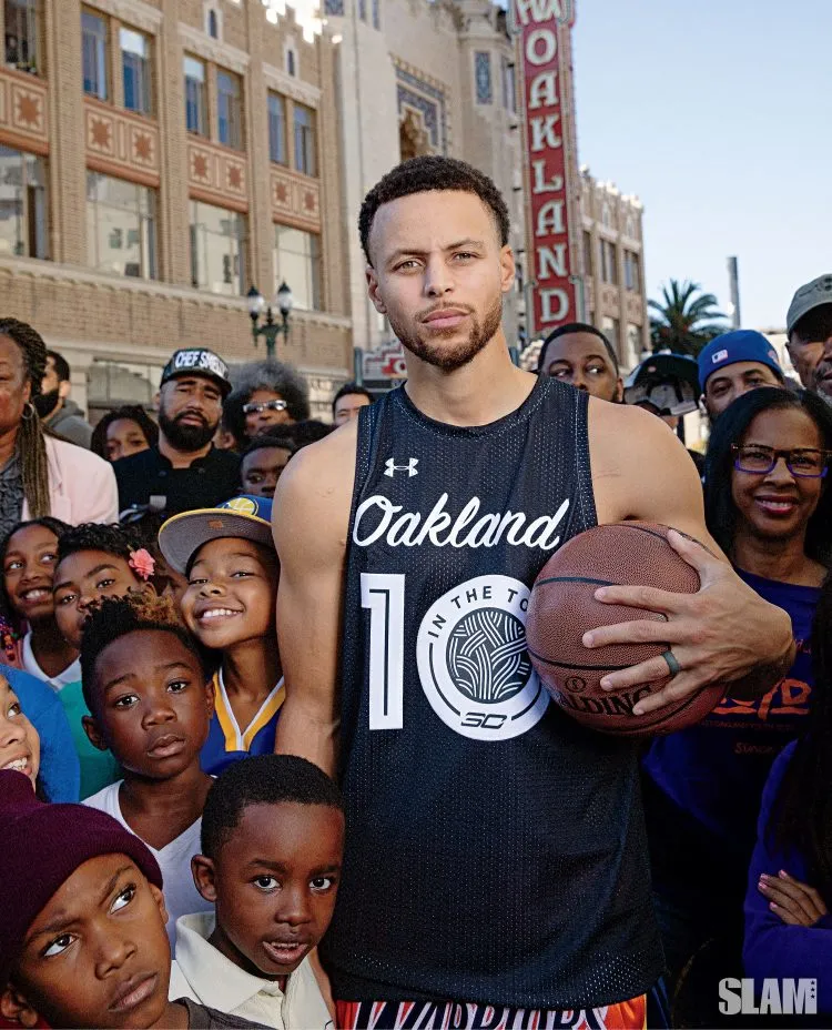 让我们回到那个在福克斯剧院外的拍摄之中,库里依旧穿着他奥克兰主题的黑色UA球衣,并配以老款勇士主题的球裤。球衣上大大的数字10——印证着他在这座城市的第10年。