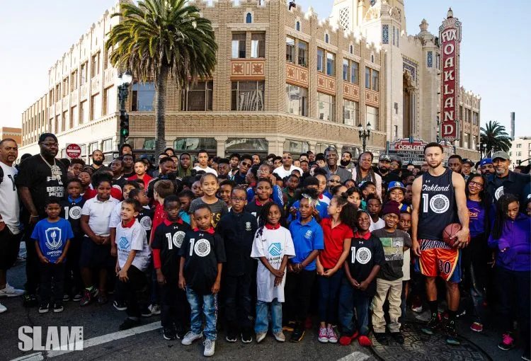 Telegraph Avenue的福克斯剧院门口,150个来自奥克兰本地的男孩女孩都焦急的等待着什么。你如果看到了上面这张图,你就知道他们已经整整齐齐的排好队等待拍摄。我们计划让库里从剧院里走出来,然后开始预先安排好的拍摄。我们同时也邀请了当地著名的人物加入库里一起拍摄——说唱歌手E-40,前世界冠军拳手安德烈-沃德,勇士传奇球员艾尔-阿特尔斯以及其他一些人。随着几台摄像机快速按下快门,以及一些后期的些微调整,我们的任务就能完成了。说不定就是这么轻松加愉快。