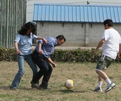 王璇做主持,自己先笑彎了腰 然而她落落大方的颱風,熱情流暢的表達,使聯歡更增添了自然的色彩。人們調侃、表演、唱歌、跳舞,追憶清華園內 5 年的金色年華,暢敘同學情深。王璇留給我的印象,更多的是性格魅力,熱情直率甚至有點天真。 然而,真正讓大家瞠目的是王璇居然是個足球迷,足球好腳。聚會期間,同學們踢足球,她也上陣,巾幗不讓鬚眉。論速度,論腳法,一點都不弱。帶球過人,有模有樣。不少同學在問,這是誰?好厲害!人們知道了,無 84 有個女漢子叫王璇,喜歡足球、跑馬拉松、喜歡爬山、開朗熱情、熱愛運動。