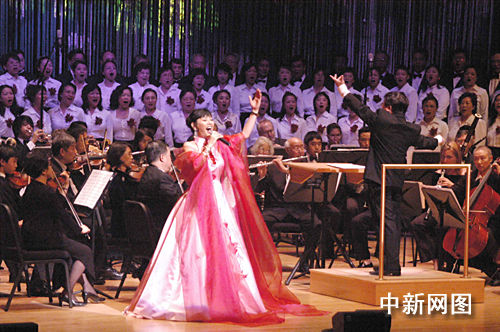 今年的金秋十一月南京藝術團的訪美演出引起了不小的反響.藝術家們給北美的華 這次演出從十一月七日到本世紀十八日,在Boston, New York, New Jersey, 這次演出從準備到節目上演只有一個多月的時間, 大華府地區的華人團體和一些 演出團體在十天之內從Washington DC,到Boston, 再到New York,然後是New .................................................................... 波士頓的網友小微粒(xiaoweili2005): "本粒子還沉浸在昨晚"文化中國---夢系金陵"的絕妙演出之中,太美啦,太好了!昨 昨晚的演出是由南京軍區前線歌舞團和南京民樂歌舞團聯合製作的;水平至高節目 我自小學校舞蹈,所以對舞蹈部分感到特別的有感觸:小城雨巷(就是今年春節晚會 這裡我只介紹一下在Washington D.C(大華府地區)的演出.先看一下大華府地 再看演出節目單: 二.女聲獨唱 錢琳 (南京軍區前線歌舞團著名歌手, 榮獲第十一屆中央電視台全 三.舞蹈 《繡》-江南風格(南京軍區前線歌舞團 陳琛等,全國大賽金獎) 四.古箏獨奏 任潔 (青年古箏演奏家,獲中國音樂最高獎“金鐘獎”,國家文華獎) 五.音 舞 畫:《花開時節》 南京民族樂團 + 前線歌舞團 六.女聲獨唱 獨唱 朱虹(南京軍區前線文工團著名女歌手,國家一級演員,榮 七.舞蹈 《溜溜的康定,溜溜的情》 美麗的服飾,嘹亮的歌聲,誇張的現代節奏,粗獷的舞蹈語彙,表達了我國少數民族 八.管樂與樂隊(南京民族樂團) 九.雙人舞(南京軍區前線歌舞團,全國大賽獲獎者) 十一. 胡琴聯奏 節目富有創意,取材我國極具代表性並為人們廣為熟悉的民歌,運用中國主要四種 2. 《賽馬》 (二胡) 十二. 舞蹈 《小城雨巷》 舞台上人美、舞美、景美的賞心悅目舞蹈畫面,表現了秀美的江南、富庶的江南、 十三.女聲獨唱 殷秀梅 十四.終曲 -- 大合唱 華盛頓亞美愛樂樂團,華盛頓華人社區合唱團 ***************************************************** 這次在南京藝術團在大華府演出的場地是非常好的音樂劇場,可以容納上千個座位 特別值得一提的是著名胡琴演奏家的楊積強的用不同的種類的胡琴演奏了大家熟 年輕的古箏演奏家任潔的高超技藝將古老的中華古器樂融入了新的演奏方法,讓樂 歌唱演員朱虹和錢琳都是年輕的演員. 錢琳演唱的《我是中國人》引起了台下觀 呂繼宏的高亢的歌聲迴蕩在整個大廳,特別是他加唱的一首清唱民歌,讓觀眾們難 殷秀梅的壓軸演出更是將當天的演出推向高潮.她一連演唱了五首歌曲,讓觀眾們 最後的大合唱是由大華府地區的一百二十多位華人(有三個大華府地區的合唱隊組 這也是我來美看到的最壯觀的合唱演出.曾經的南京歌舞團的馬團長的指揮,以及