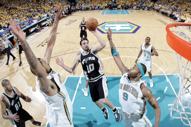 世間一切皆戰鬥,世間人人在戰鬥。 從出生的那一刻,我們就拳打腳踢地為了一口奶而戰鬥。 接下來就是為了一朵小紅花, 為了進一所好大學, 為了得到心儀的女孩兒, 為了汽車,為了房子, 為了自己的孩子吃一口好奶, 為了自己的孩子得到一朵小紅花, 。。。。。。 真是生命不息,戰鬥不止。 ------------------------------------------------------------------ 蜜蜂和馬刺也在戰鬥。 這場看起來是幾十個人的戰鬥,實際上是幾千人,幾萬人在同時戰鬥。 人類是聰明的群體。 在遠古時代,我們和獅斗,和虎鬥,和豬斗。 我們沒有被斗滅,相反卻越斗越勇,直到出類拔萃,鶴立動物群。 當其他動物不值得我們斗的時候,我們便互斗。 人類的聰明在於從戰鬥中總結經驗,在戰鬥中運用經驗。 這種經驗就是戰略戰術。 蜜蜂和馬刺隊戰鬥雖然是群斗,打得卻有條有理。 絕不是群毆的那種人們上來就抓頭髮抓臉咬鼻子。 這可多虧了先人總結的戰略戰術。 我們看看蜜蜂的戰略戰術。 防守上: (1) 堅決保護蜂巢(老Z語),誰衝進來,群峰便圍而攻擊之。 (2)對於馬刺的外圍阻擊手,蜜蜂衝出去迎擊之。 所以,鄧肯每次拿球,就會有至少兩個蜜蜂夾擊他, 所以,外圍的馬努,芬利在射擊前,都會有小蜜蜂以飛蛾撲火的優美姿態飛去。 進攻上: (1)靠小炮的衝擊。 小炮通過和錢德勒或大西的拆當衝擊籃下,可以給自己創造投籃的機會,也可把馬刺隊防守撕開裂口,給隊友創造進攻機會。 (2)單打獨鬥。 這是中國三國隋唐兩宋年間的先進打法,雙方排好兵布好陣,然後各派一員大將出戰。 大西是蜜蜂單打獨鬥的首選,皮夾和棒子也時時演練一下。其中大西攻擊最有效。 蜜蜂的戰術聽起來簡單,卻適應。至少目前馬刺還沒有很好的辦法阻擋。 帕克沖了。 馬努也跳起了凌波微步。 昨天才知道鄧肯第一場病了,難怪他發揮失常。 可是馬刺隊進攻效率卻不是很高。 他們還需要第四隻手,一隻穩定的讓小蜜蜂割捨不下的外圍阻擊手,來打亂蜜蜂的防守。