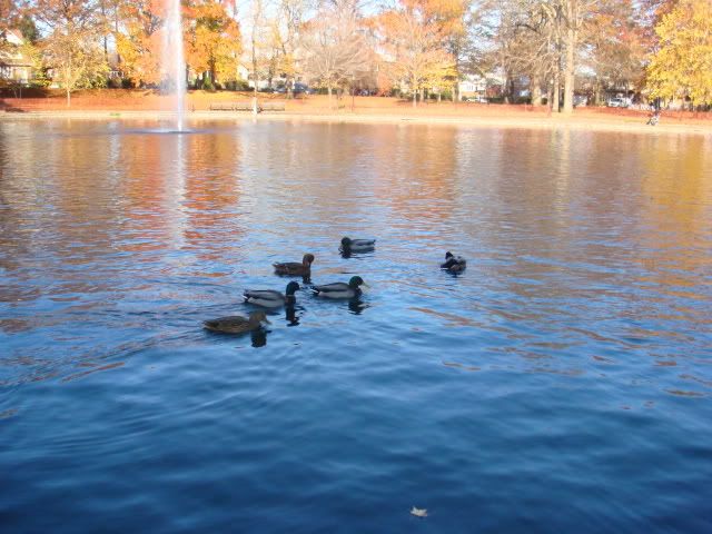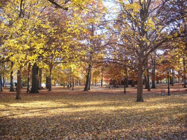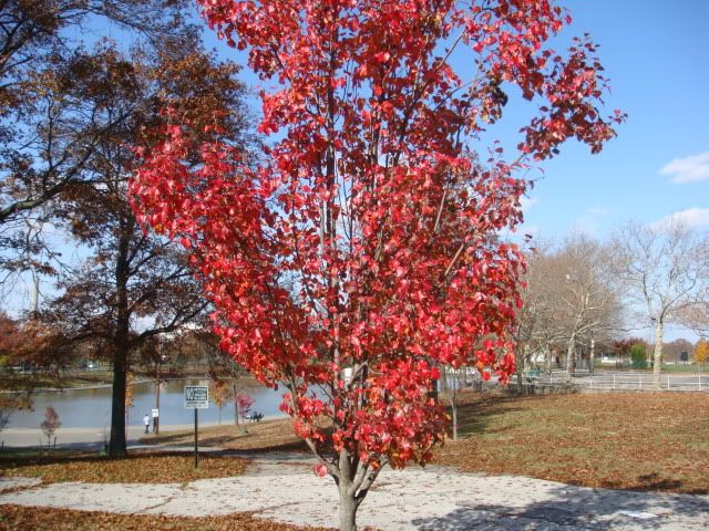 古人云,一葉而知秋,那是對賢人而言的。現今人在美國,成天呆在有空調的空間裡,對四季的變化,慢慢地也遲鈍了起來。只是看到這滿地落葉,俺再愚鈍,也知道秋天到了。 今天是立冬後的第一個周末,天氣很好。早上散步,看到池塘里的野鴨,還是那麼悠閒,不禁想起“春江水暖”的句子。這冬天快到了,它們可知? 白天和家人到長島的艾森豪威爾紀念公園去賞秋,天高雲淡。有了久違的兒時的感覺:秋天就應該是這個樣子的。 以前讀《神童詩》, “秋飲黃花菊,冬吟白雪詩”, 知道那是中國文人的東東。咱美國勞動人民,喜歡的是陽光下的運動。這麼大一個紀念公園,正是休閒的好地方。 公園裡到處走走,滿園秋色。 霜葉紅於二月花,原來春秋可以同色。 湖邊和往常一樣,有人玩航模。 小艇也可以激起漩渦,這年頭,什麼都用槓桿原理不成?