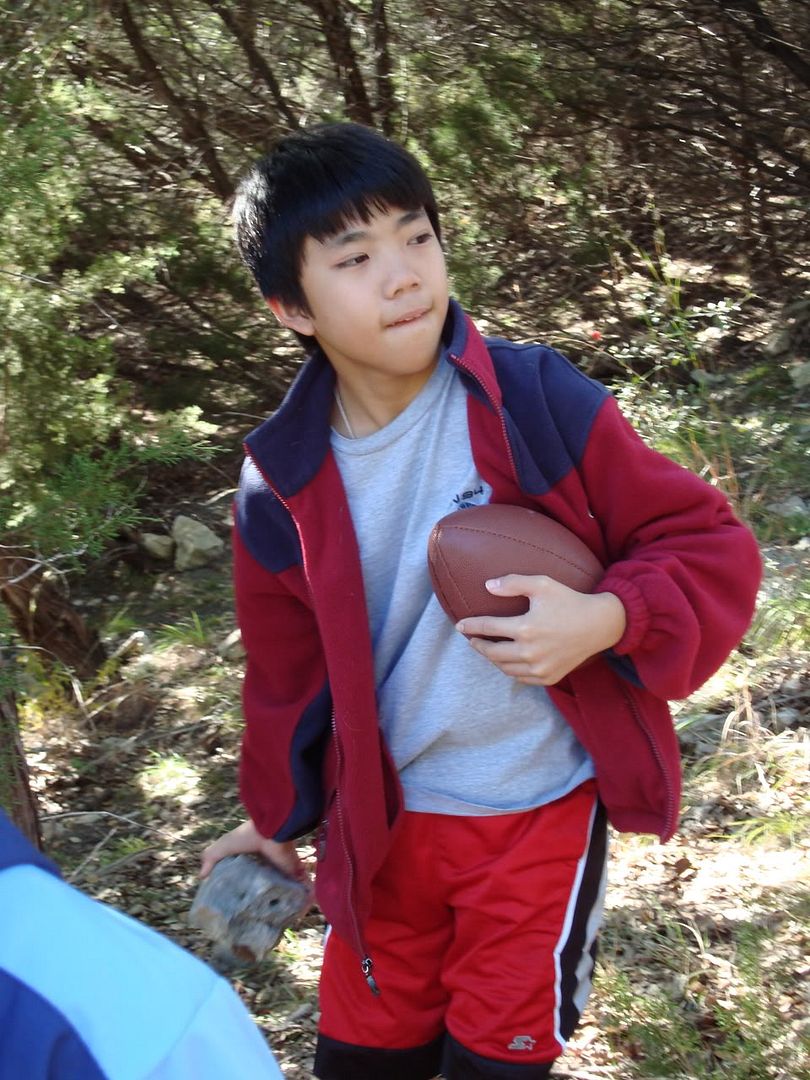 真正開始了解football是兒子上小學三年級後的事了。小傢伙什 麽球都喜歡,都打的有鼻子有眼,但沒成想最喜歡的竟然是football。那是還很小,個子也不大,胳膊顯得短短的,可是論起來能把個小size的兒童 football扔出去老遠,接得也准,加上跑步速度快,居然成了小孩子裡面打得好的,每每中午飯後活動時間很多小孩子一起打,他算是個核心人物。後來五 年級時,學校里轉來了一位西班牙裔的小男孩子,叫Bill,比他高出去一頭(因為他蹲過一級),技術很不錯,但很霸道。沒過多久就沒有孩子傳球給兒子 了,儘管他wild open,所有的pass都給了Bill。那時算是兒子唯一一段學校生活低潮期。兒子屬於個性開朗的孩子,從幼兒園到高中,從沒有 complaint過什麽。聽了兒子的講述,俺挺難過,問他:你覺着我能做些什麽幫助你嗎?他想了一下,說:"Not very much. 我就先和那些打的不好的孩子們在一塊兒玩兒吧”。這大概持續了有幾個月的時間,到快畢業時,Bill終於也成了他的朋友,可以一起打球了。