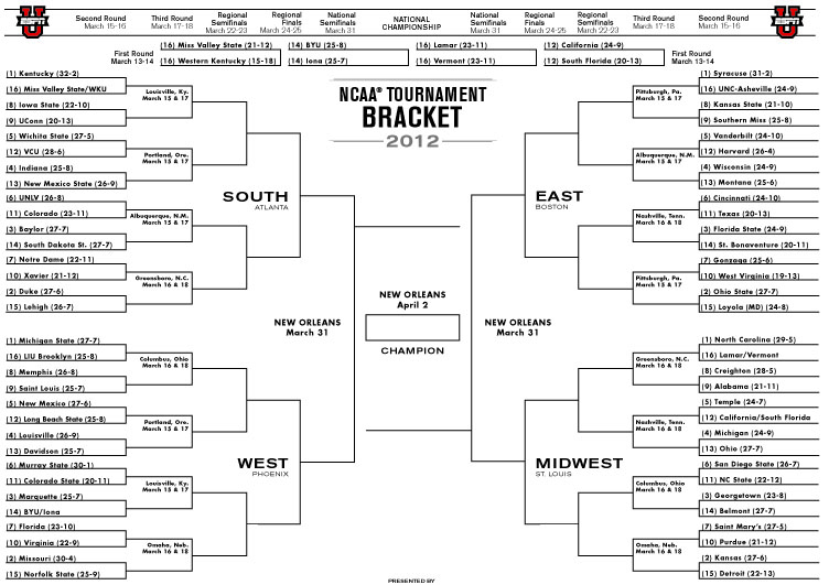 當年牧人在伊利諾伊的時候,每年三月都有人在系裡搞一個Pool,一人交十來塊錢,勾出你的選擇,過足三個星期的癮。