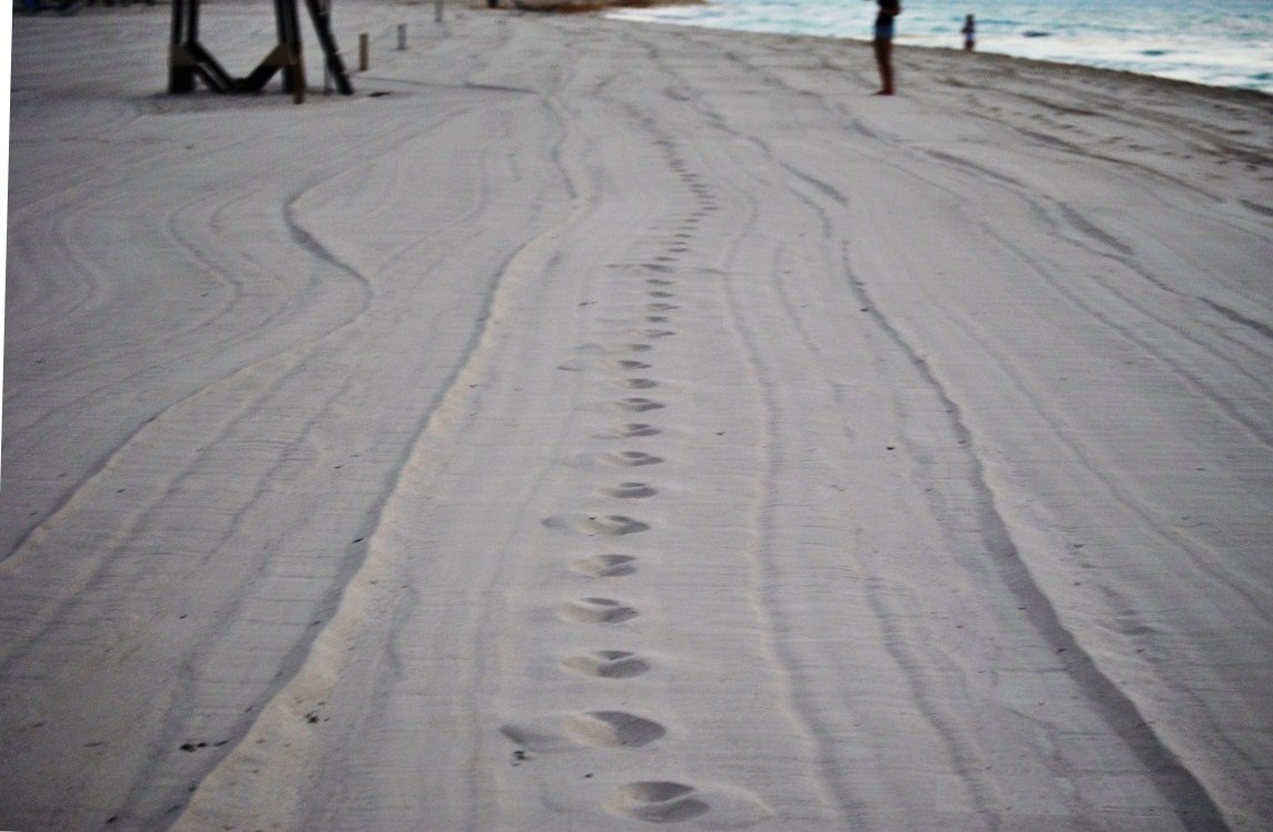 刚MOW过的沙滩绵软柔滑,如锦如缎,想留下一溜儿轻盈的猫步,回头一看,妈呀,熊来过?