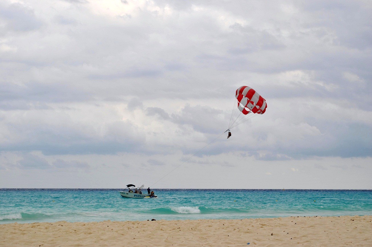 PARASAILING,被小船拉扯着放成风筝,高高低低地漫游,看上去倒也惬意,只是自打那年坐过摩天轮后我就患上了恐高症,PASS!