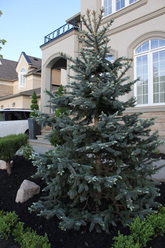 Hoopsi藍雲杉為牧夫人欽定。她枝幹挺拔,顏色自內向外由綠轉藍,最主要的是她可以長至10米高、但直徑不及3米,不會“霸占”太多地盤