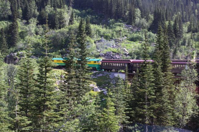 就這樣,作為淘金者的後勤基地,SKAGWAY形成了村落,逐漸繁華起來,有了店鋪,學校,教堂。緊接着,從這裡為起點開始修鐵路,後來又有公路。二次世界大戰的時候,這裡又是美軍使用的一個港口(我猜美軍不使港口前突,安全考慮是主要的)。現在,SKAGWAY主要的活動就是大約半年時間的旅遊了,冬天這裡的居民只有800900人,而整個夏天的客流量居然有800000!。ALASKA州府對郵船有一個收費,大約是每人每個港口收50塊,800000X50那就是40000000,光靠這筆收入這裡的人就不用工作了。另外還有一筆大的,就是火車遊覽。到了SKAGWAY很多人都會乘小火車沿着當年的淘金足跡緬懷一番,行程來回不到45英里,時間約三小時,票價約120------起,因為還有更遠的線路。每年乘火車的約350000人,按粗略的算法僅僅小火車一項又是個四千萬。算這些的意思呢就是找一找辦旅遊的這個感覺,呵呵。OK,開始繼續上照片。