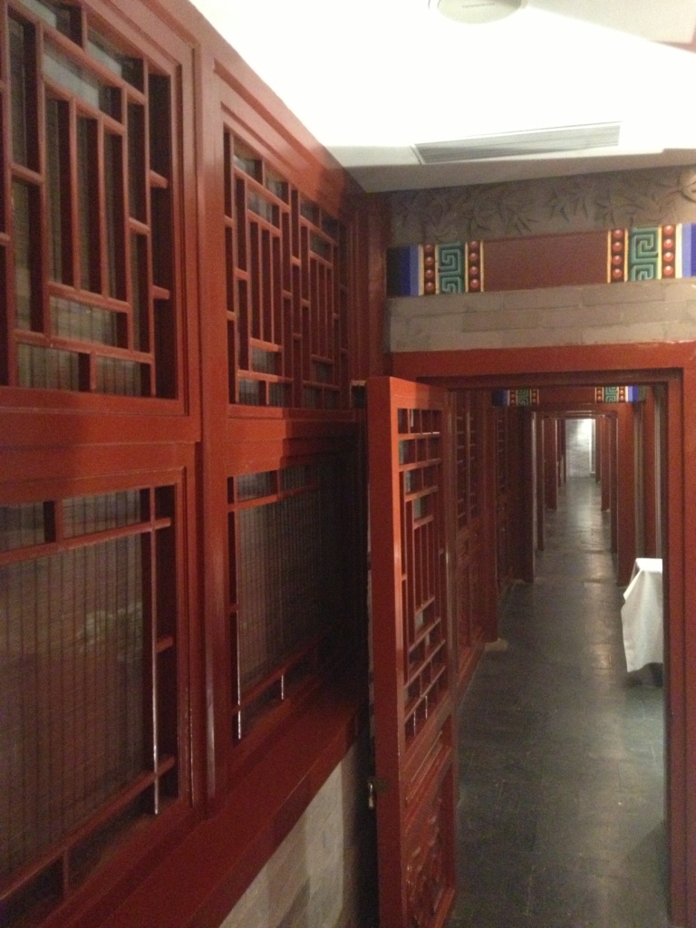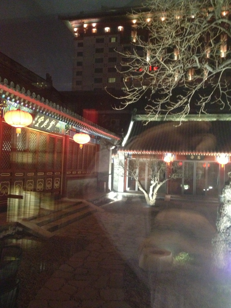 帝都虽说不如西安古老,倒还是个处处有历史的地儿。前晌一个周末,城里城外转了两天,感受尤深。 周六晚上,去东城的一家餐馆聚餐。到了那儿,才发现是一处老宅子。大堂经理过来,介绍了一下情况,原来这是十三爷允祥当年的房子,后来成了李鸿章的府邸。李中堂在此住了40年。 那房子,三进院,让一位港商租下两进,作了一家餐馆。用手机胡乱拍了几张,以为留念。
