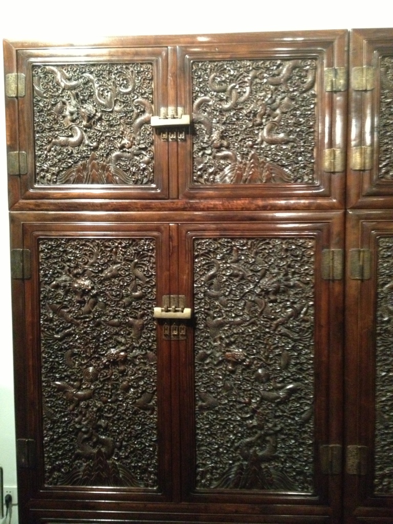 大堂里两张大柜,一为小紫檀,一为黄花梨。这两种木头如今都是论克卖,是不是老物件儿,都是天价了。 ![]()
