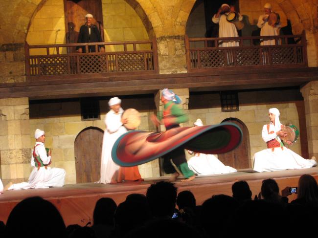 在路上我们遇到了台湾人小江,她也在找住处,我们最后一起找到了在解放广场边上的一家旅馆, 在五楼上。 这个解放广场就是一个多月以后群众游行示威的地方。 这个地区的房子都很老旧,每一层楼的间隔很高,爬一层等于其它的地方的两层。 楼里破旧的电梯小得只够乘三个人,如果门没关好它就不动,鼓捣了一会我们才适应了它的操作方法。 安排好房间我们就去火车站买去阿斯旺的车票,卧铺票要好多天以后才能有,我们不能等那么久,就买了两天以后的一等坐票。 晚上我们和小江三人一起去看苏菲舞。