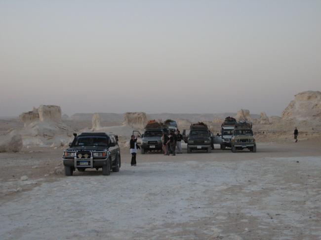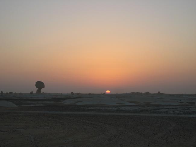 开罗老城 哈利利市场的爱资哈尔清真寺旁边的固力宫有免费的苏菲舞表演,我们打听了半天才找到地方。 我们座位的周围有不少从欧洲来的中国留学生,开演之前闲聊中我们听到来自英国的小陈二人在征集伙伴一起去黑白沙漠。 他们原定的一起去的朋友因为英国下大雪,航班停飞来不了了。 小陈说如果有兴趣,第二天一大早可以和他们一起坐长途车去 巴哈利亚绿洲, 从那里进沙漠。