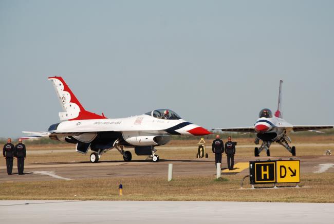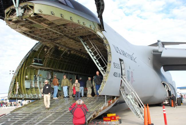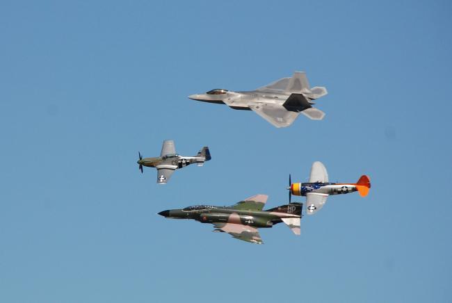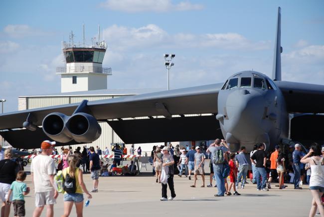 每年,在美国各地,都有空军与地方联合参加的空展。各种老式和最新的飞机摆在停机坪上供大家参观,同时还有许多飞机的飞行表演,非常精彩。中国空军对自己的装备非常谨慎敏感,不愿意别人靠近自己的飞机。老美似乎不太在乎,挺先进的飞机停在那,拉根绳子就是了,随便看。小孩子还会被当兵的举起来,伸头到机舱里看一眼,甚至有的飞机还允许参观者进入驾驶舱。当然了,最新式的飞机,像F-22,还是躲在远处的HANGER里,太珍贵了。