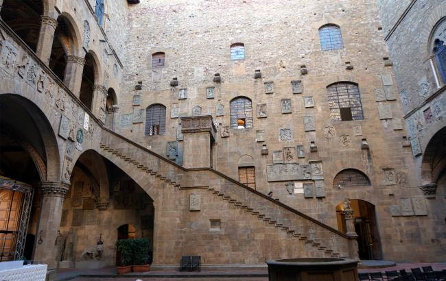 烏菲茲的Courtyard,兩側的雕像是伽利略和達芬奇 建於1255年的巴傑羅曾是佛羅倫薩的市政廳,展品以雕塑為主。跟烏菲茲相比,巴傑羅美術館遊人稀少,在這裡可以放鬆地觀賞。她有一個龐大又極富特色的Courtyard,三側是迴廊;坐在迴廊寬大的石凳上,悠哉地四下張望,對哪個雕塑感興趣了走近細細觀察,然後再就近坐下,沒有人跟你搶座位。室內的雕塑包括米開朗基羅、多納泰羅、貝尼尼和維洛歐齊(達芬奇的老師)等眾多大師的作品,完整名單見 這裡。
