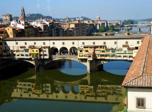 提香的《維納斯》 - 烏菲茲 從烏菲茲俯視老橋、阿諾河及南岸 烏菲茲美術館是一座U型建築,其Courtyard也很有特色,築有文藝復興24賢的雕像。