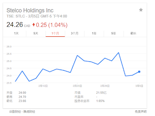 这是近期STELCO股价走势,消息出来后,已经跌了4%多一点,希望还能继续下跌。