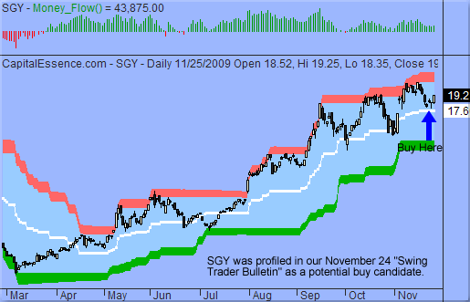 在能源板塊上,Stone Energy Corp (SGY)成為領頭羊,周三上漲了3.6%。下周顯示周三強勁反彈可能是新一輪上漲行情的開始,該股或將重新測試11月初創下的2009年高點。註:我們曾在11月24日「短線交易者公佈」中將SGY列入潛在買入名單。