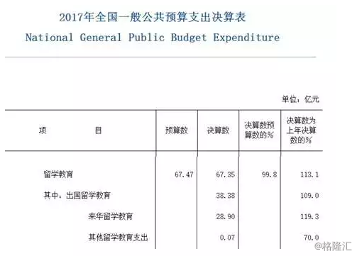 在前述数据之外,老蛮我还不辞辛劳的去查询了教育部2017年的决算数据(见下图),来华留学教育支出是28.6亿。教育部的数据当然就是中央层面的支出,与全国数据之间的差值为0.3亿,这应该就是地方政府的支出规模。