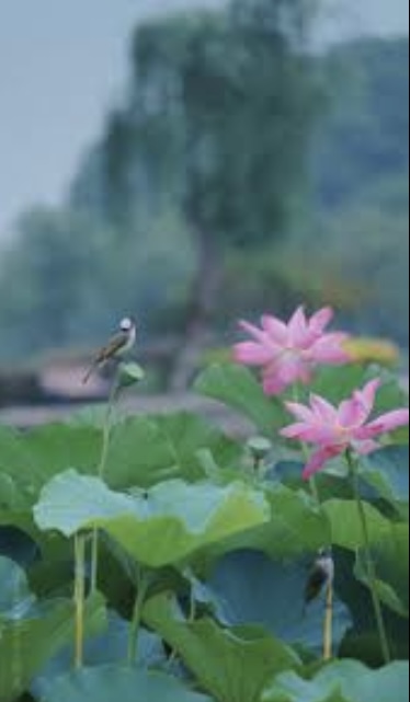 【七絕】雨散雲飛 (平水韻) 雨蒙湖色小舟浮, 散帙荷香怡夢秋。 雲外奇峰今隱翠, 飛來一鳥下山頭。